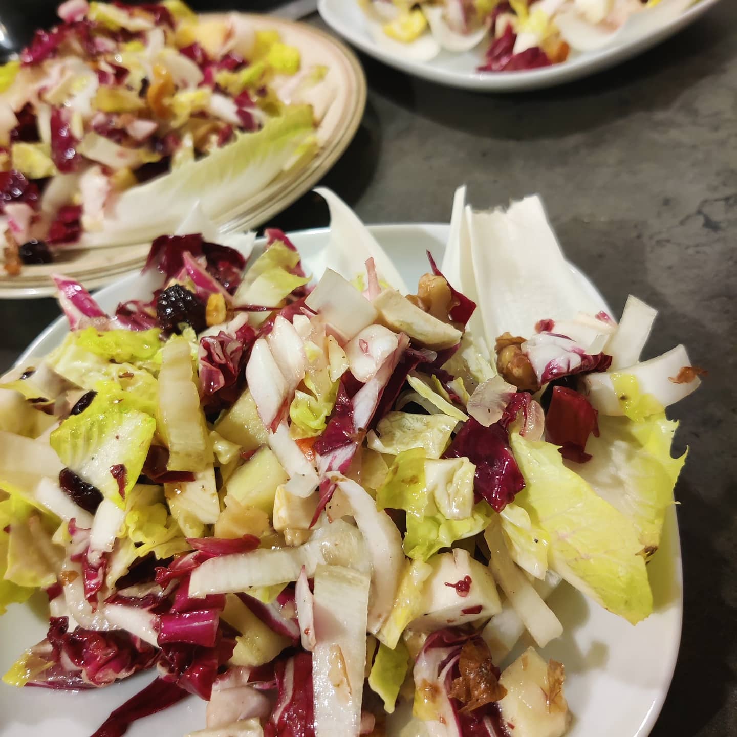 #silvester #vegan #wintersalat #radicchio #chicoée #rouladen #soja #klöße #rotkohl #blaukraut #apfelküchle